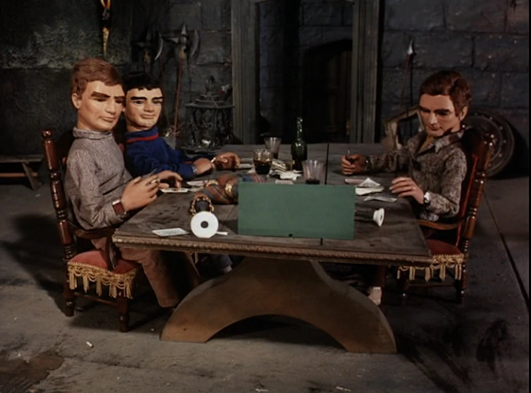 With Southern freed, International Rescue turn their attention to the escaping villains, who are rendezvousing with their boss at a helijet in a remote field. Just as they are about to take off, FAB 1 bursts through the hedge carrying Lady Penelope and Parker, who shoot down the helijet and all its passengers. Penelope meets up with Scott, Virgil and Southern and offers to take Southern back to her manor where he can recover from the injuries inflicted by the robot. There he laments that his career is over now that his cover has been blown and tries to stifle Penelope's apparent fascination with life as a secret agent, oblivious to her role within International Rescue.