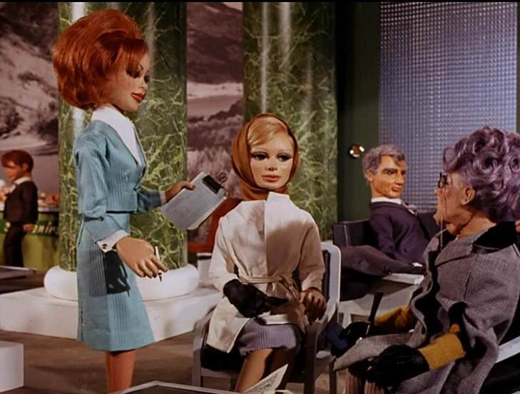 The Air Terrainean hostess is a character from The Duchess Assignment. She was working at London International Airport when the Duchess of Royston flew to America to meet Wilbur Dandridge.