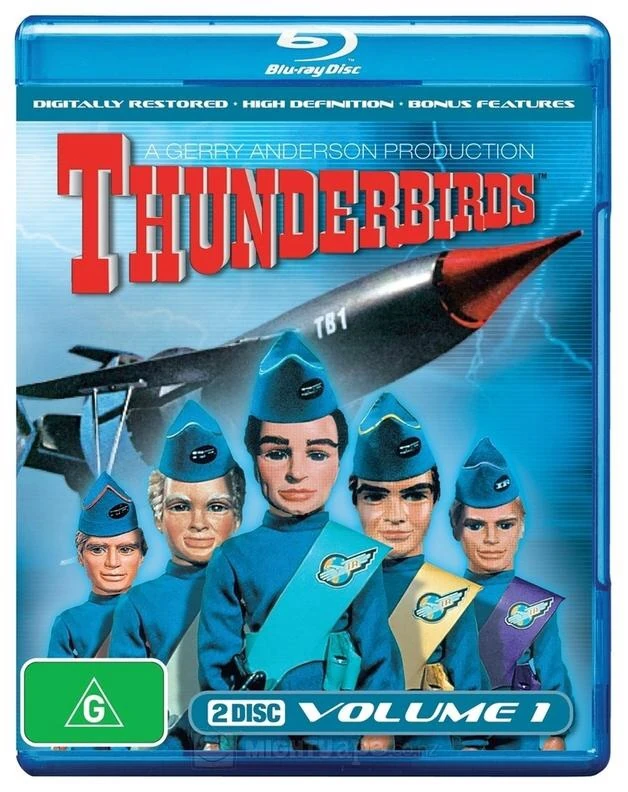 In 2009, Thunderbirds came to HD in a series of three 2-disc Blu-ray volumes, but with the video cropped to 16:9 (like the UK Blu-ray) resulting in a lost portion of the original video. Later in 2010 the series was expanded to six volumes, with each volume now containing only one disc. The cover art layout (which ran across all volumes) includes a group shot of the Tracy Brothers and an International Rescue Vehicle in the background (notably the five Thunderbird craft on their respective volume number, plus FAB 1 on volume six).