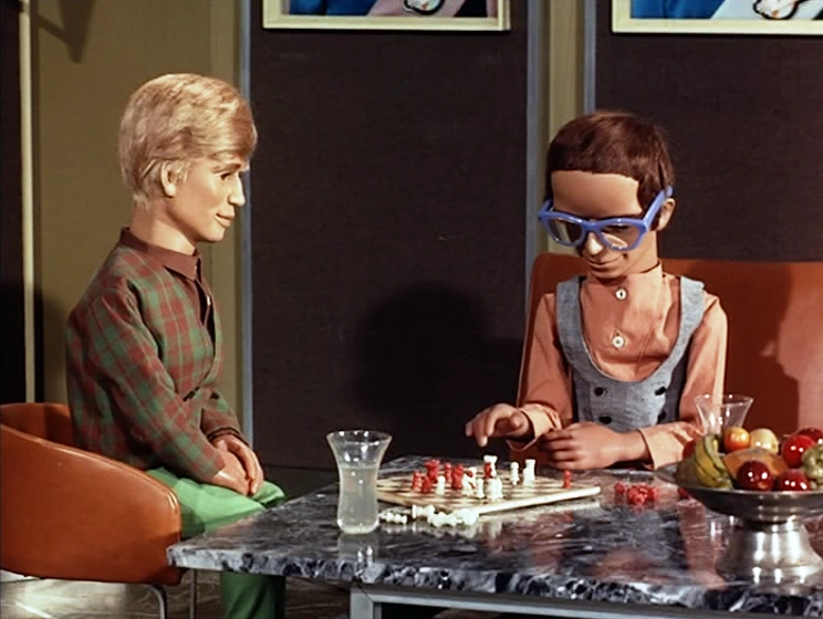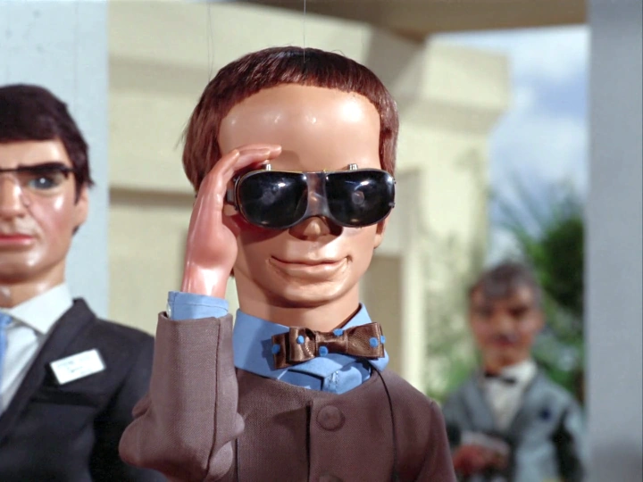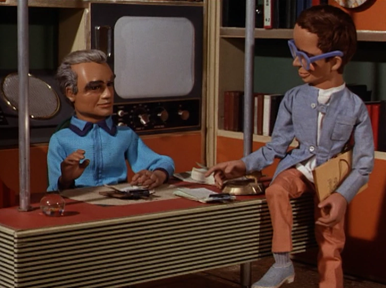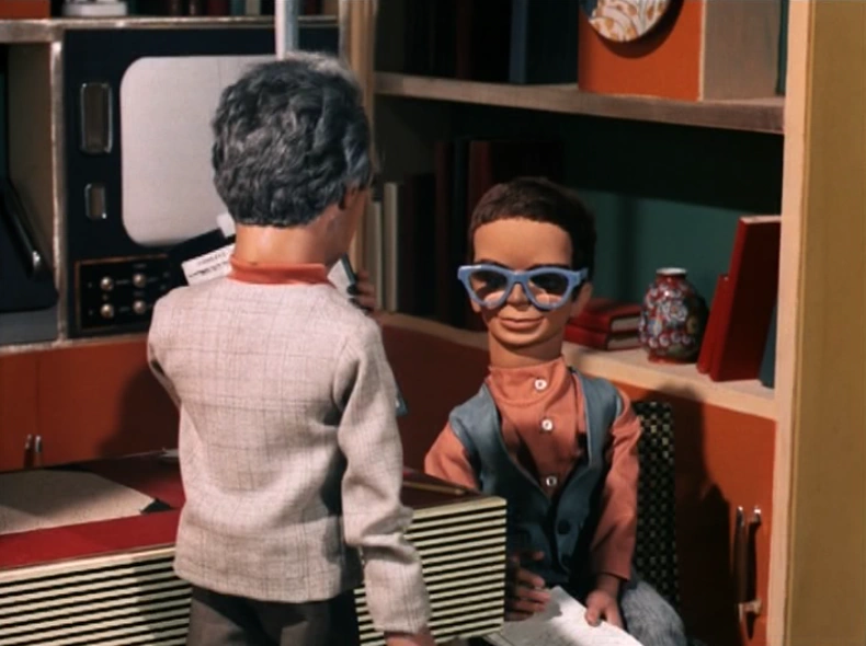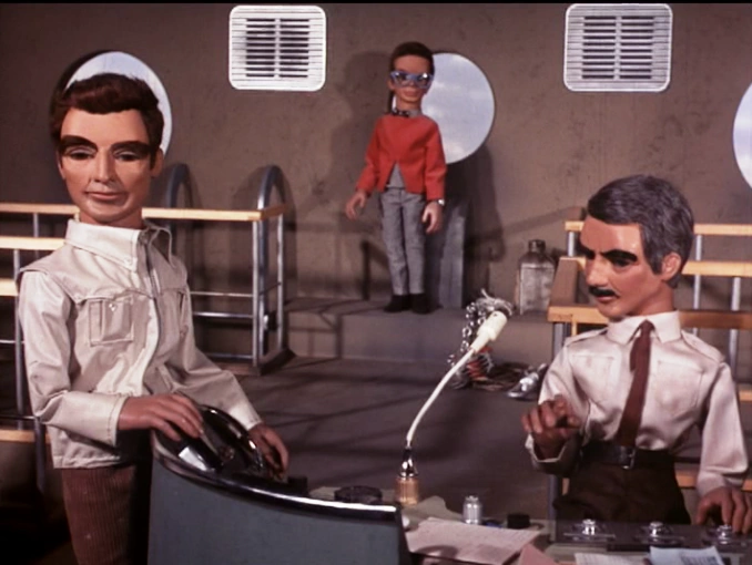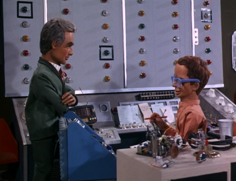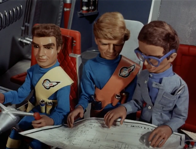While Brains is visiting Lady Penelope in England, they witness the collapse of the Allington Suspension Bridge, on live TV. They set off for the bridge site in FAB 1; and Brains is presently able to gain access to the bridge's control center. The Bridge Controller in charge summarily blows off Brains' query as to whether International Rescue has been summoned - and so, Brains withdraws unnoticed to the back of the room, and uses his wrist-watch telecom to very quietly contact John, up in Thunderbird 5...