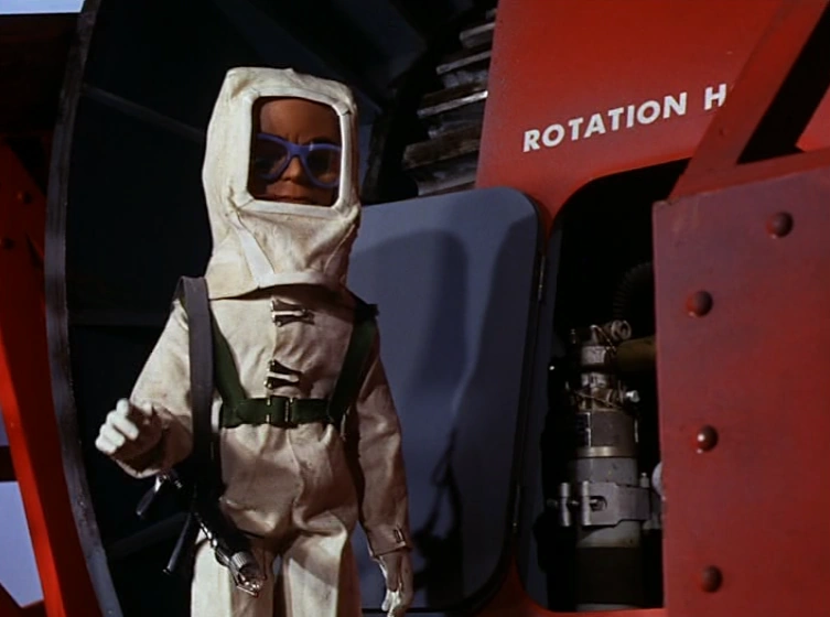 Alan and Grandma are trapped high on the girders of the recently-completed San Miguel Bridge - with a bomb that will detonate, if either of them move! With no time to locate the bomb itself, Brains uses the Neutralizer Tractor to immobilize it, so Virgil can safely venture out onto the bridge with the Jet-Air Transporter, and rescue his brother and grandmother...