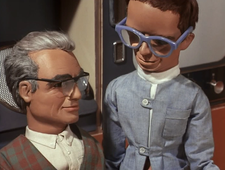 As International Rescue sets out on its first mission, Jeff congratulates Brains on inventing the Thunderbird machines: "Your phenomenal mind has made this all possible - now, you're going to see it in operation..."