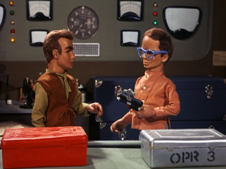 Brains accompanies Virgil and Gordon aboard Thunderbird 2, in the hunt for the missing Fireflash 4. Consulting his charts, he realizes the plane must be somewhere on the seabed. Gordon and Thunderbird 4 quickly locate the downed craft, and Brains instructs him to use the yellow mini-sub's lasers to cut off the airliner's two main engines - as this will allow the fuselage to float to the surface, and its trapped flight crew can then be rescued...