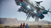 - When Thunderbird 2's VTOL engines are attacked by Air-Mechas, its Module is missing for a few quick seconds.