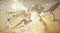 One of the Mechas cuts the cables to TB2's giant electromagnetic grabs