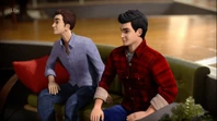 - It's the first time the boys don't just sit or stand around the holographic interface from the coffee table, in fact Gordon and Alan are fighting each other with the couch cushions while the rescue is taking place to amuse themselves.