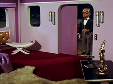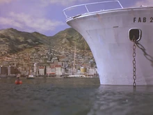 FAB 2 is the latest in a succession of vessels owned by Lady Penelope Creighton-Ward. Fitted out to the highest standard, FAB 2 is moored at an exclusive private marina on the south coast of England. The yacht was specially built for Lady Penelope by International Engineering, a company of which Jeff Tracy is a major shareholder. FAB 2 can be operated by either one person or up to six, depending on the duties to be performed. The yacht is mainly used for social functions when Lady Penelope is traveling, although when required, it can also function as a floating operations control centre for International Rescue. FAB 2 has a garage for transporting FAB 1. Docking clamps with built-in shock absorbers prevent FAB 1 from moving and getting damaged in adverse weather conditions. The waterproof garage door doubles as a ramp; utilising its hydrofoils, FAB 1 steers into the garage and once clamped into position, the door is closed. FAB 1's hydrofoils retract whilst water is removed from the garage.