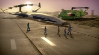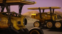 - This episode marks the first time a pod vehicle has been destroyed, with the Elevator Cars having been destroyed in a failed landing attempt. This was followed by a Pod Explorer driven by Scott in Recharge, and a space variation of the explorer in Colony.