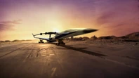 After Scott blasts off in Thunderbird 1, London Control contacts Fireflash and the Hood answers that he has the plane which was what he wants. In the cargo hold, Kayo attacks the Hood and while they fight, they damage a fuel tank in the process. After the Hood departs in an escape pod, Kayo returns to the cockpit and informs Scott and John that the plane is leaking fuel. John tells Kayo that the longest landing strip she could land Fireflash on is an abandoned spaceport in the Gobi Desert. After dropping down to subsonic speed, Scott performs a flyby to check there was no damage on the fuselage. As Fireflash approaches the runway, Kayo deploys the landing gear but only one wheel lowers and the landing is aborted.
