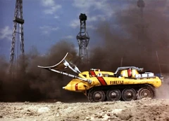 - The Firefly prop is believed to have been recycled into a vehicle from an episode of Captain Scarlet and the Mysterons - specifically, Fire at Rig 15. Its new job is closely related to firefighting, but it now drops explosive charges into the inferno at the oil well that was sabotaged at the start of the episode.