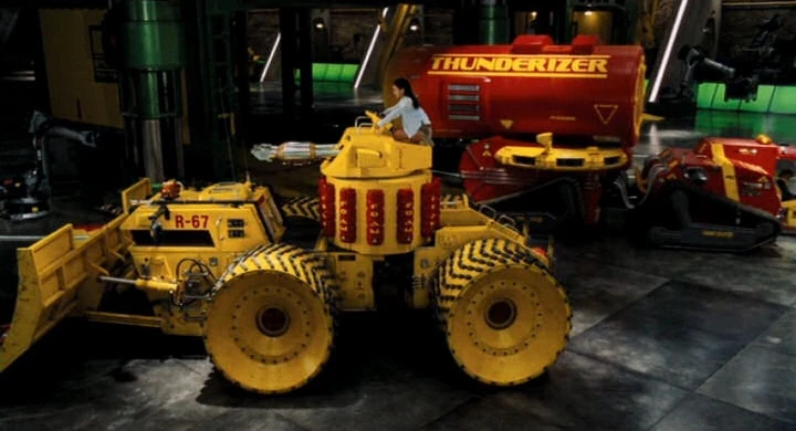 Fermat and Tintin use the Firefly to ward off The Hood's goons by shooting foam at them.