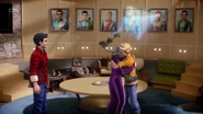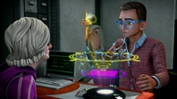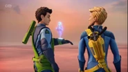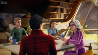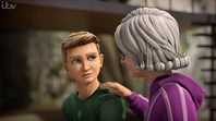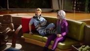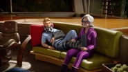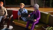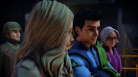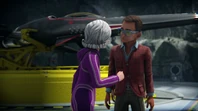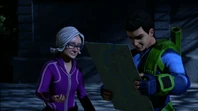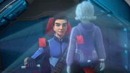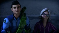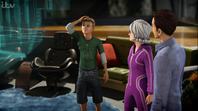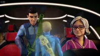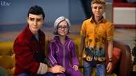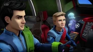 Grandma Tracy is keeping track of all the missions on the ground as they are swamped with incoming calls for help. She suggests Scott gives Brains a lift on his way to K2 and later tells Virgil to help Brains out moments before he lands back on Tracy Island.