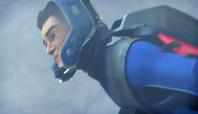 Scott leaps out the back of the RAD and tries to use the flight suit to slow it down