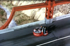 After the bomb's motion sensor had been neutralized, Alan and Grandma had to be evacuated before the bomb went off. This was achieved using the Transporter, which was positioned on the base of the bridge, underneath the platform they were trapped on. From there, it was safe for them to simply jump off, knowing full well that Virgil Tracy would be there below to catch them.[1]