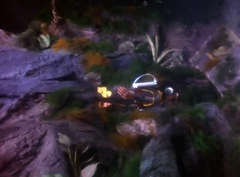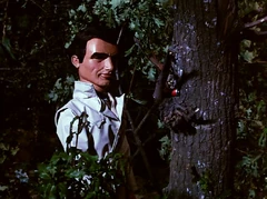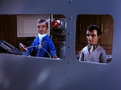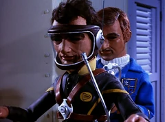 John calls in to Tracy Island for guidance on this "kind of unusual" emergency call: "I don't know what to make of it," he admits to his father. "OK, give me the details wherever we can reach this guy," Jeff responds. "Then, tell him we'll send one of our agents to contact him..."