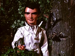 Warned at gunpoint not to turn around, he explains that top-secret plans of a nuclear device have been stolen. Reminded that it is against International Rescue policy to engage in police or espionage matters, he replies that IR has the most advanced equipment in the world, and is the only chance of retrieving those missing plans. The agent (Lady Penelope) listens - and then agrees to help him...