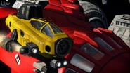 The tools the Explorer equips in Breakdown include multiple bright searchlights, an emergency speed jet booster, and a grappling hook on the front and the rear. It travels using three flexible legs that end with caterpillar tracks, with one positioned above the vehicle, providing a smooth ride regardless of how rough the terrain is. These legs can also make the Explorer tip forward and enter a pit, and by pressing the three tracks on the walls of the pit, it can travel up and down it like an elevator. Should the bottom of the pit end with a large drop, the grappling hooks can penetrate surrounding walls and gently lower and lift the Explorer to and from the pit.