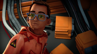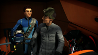 On Thunderbird 5, John examines the A.I and realizes something is not right. Back on Tracy Island, Alan thinks he should have come and Scott tells him he never figured out the game theory. John tells them that he captured a piece of the A.I’s data and explains that it evolved from game code he created. Grandma enters with a plate of food and explains that she cooked it with the help of Brains’ robot, MAX. Scott and Alan ask Grandma what they should eat first and she says that they shall start with her disgusting cookies which they nervously try.