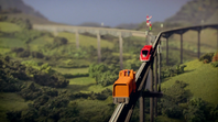 As Thunderbird 1 hovers over the train, Brains ziplines down its grappling cable, screaming all the way. After several failed attempts, he and Scott land on top of the train and drop down inside. Brains takes out the three conductor nodes but it does not work. After John tells Scott that there is a switching point dead ahead, he operates Thunderbird 1 by remote control in an attempt to slow down the train. As Thunderbird 1 gains more thrust, its cable snaps. As the train closes in on the passenger train, John activates the points, switching the test train to a clear track. He tells Scott and Brains that the track leads to the station terminal at Unabara City and explains that the virus in the train’s computer is alive and thinking for itself. Brains says that he can stop the train another way. Scott climbs out onto the side of the train and rearranges a power box. After Brains tells him that he needs to rewire the mainframe by hand, the driver shows him the power cutoff and warns him that if he presses it, the train will stop so quickly they'll get squished in what they refer to as the 'brick-wall' effect.