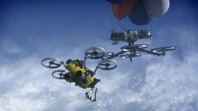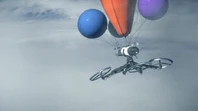When Langstrom tells Brains that his balloons are filled with super-hot hydrogen ions, he worries that the balloons will explode. He sends Alan to pull CIR.R.U.S downwards with Thunderbird 3’s grasping arms and retro rockets. The fans break off and a piece of debris hits one of Thunderbird 3’s engines, causing the rocket to fall. Alan fires the emergency thrust vector and breaks off. The Tracys argue about saving CIR.R.U.S but Scott tells them to calm down and says that they have no hope. John says that he can save them by flying Thunderbird 5 to a position right above CIR.R.U.S and use the Space Elevator to latch onto the station and lower it to the ground. When Brains says that the cable wasn’t intended for that weight, John explains that Brains always over engineers his inventions. He dumps his spare supplies from Thunderbird 5’s cargo bay before firing the station’s powerful thrusters.