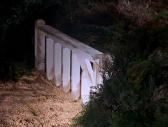 - As Alfred staggers towards the road we see a gate hinged on the right, but as he lies in front of it, the hinge has changed to the left.