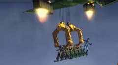 Four grappling hooks are outfitted on the walls of the module compartment, which can only be deployed when Thunderbird 2 has deployed its module. It is only seen use once so far, in Grandma Tourismo, to anchor Thunderbird 2 to the ground to prevent it from being blown over by a Category 13 sandstorm.