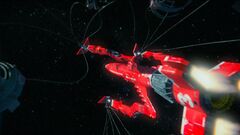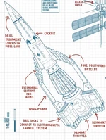 Although capable of agile atmospheric flight (as seen in Skyhook & Falling Skies) and handles well in situations where gravity is significant thanks to its powerful thrusters, TB3 lacks wings to generate lift and is primarily designed for space rescue missions, usually only flying straight upwards to space after launching. It can move very freely in space using vernier thrusters built around its whole body to perform delicate maneuvers. The engine array at the base of the rocket includes an incredibly powerful central ion engine for extremely long distance space travel, and three rocket engines surrounding it. Three grapple arms connect the middle of the ship to the three rocket engines, which can be deployed for various uses. The cavities where the arms sit has nozzles, allowing the engines to fire frontward when the arms are deployed.