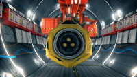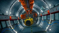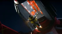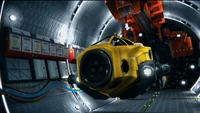 Thunderbird 3 is kept in a silo in the refuelling hangar on Tracy Island. To launch, Alan sits on the pilot seat in the lounge, with any co-pilots on the co-pilot seat on his right. The two seats lower to the Thunderbird 3 and Thunderbird S launch tube, which Alan and the co-pilot are taken along via a trolley. The launch tube splits into the Thunderbird 3 pilot launch tube and the Thunderbird 3 co-pilot and Thunderbird S launch tube. While Alan is in his own launch tube, his wrist mounted holographic displays and chestplate are attached to him by robotic arms with him personally putting on his space suit, gloves and sash while the seat is being rotated 180° so that he exits the launch tube backwards. While this is happening, the co-pilot is suited up by robotic arms while the seat is being rotated 180° so that they exit the launch tube backwards. Once the two have rejoined, they are taken onto the loading arm, which lifts them into the Thunderbird 3’s cockpit. Once they have entered the cockpit, the loading arm moves out of the way, and the pilot and co-pilot seats have been moved into place, Thunderbird 3’s silo encloses. This allows Alan to launch Thunderbird 3 into the sky and towards space.