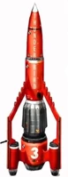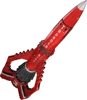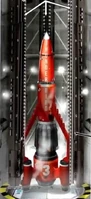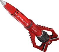 Thunderbird 3 is a giant SSTO (Single Stage to Orbit) space rocket that is revolutionary in terms of speed, functionality and reusability. A real red hot rod, she was created by Brains and is owned by International Rescue. Her existential purpose is to save the lives of people who are in mortal danger outside of the Earth's atmosphere, though she has been used unconventionally several times. It is piloted by Alan Tracy, and sometimes co-piloted by Kayo or Scott Tracy. John Tracy has also co-piloted the craft on several occasions, (each of these cases, however, have shown John joining the mission in progress, rather than being involved in the launch procedure). Virgil Tracy and Gordon Tracy have both co-piloted the craft twice.