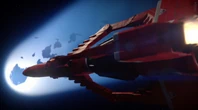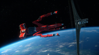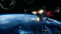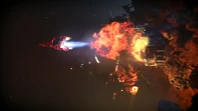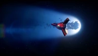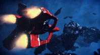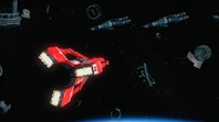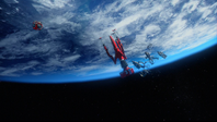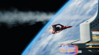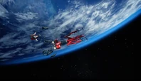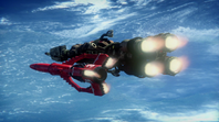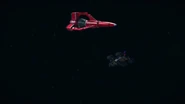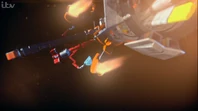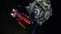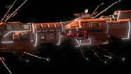 Alan takes off in Thunderbird 3 towards the derelict EDEN generation ship to try and locate John who lost contact with Tracy Island while on a simple rescue. When the bots on board EDEN start to tear the ship apart, Alan tries to bring in Thunderbird 3. However, the ship is too big to get within range. By using the Exopod, John, Alan, O'Bannon and the two space pirates escape the generation ship for the safety of Thunderbird 3 as the large craft explodes.