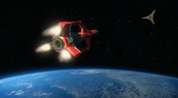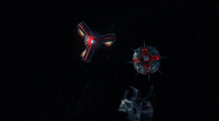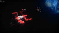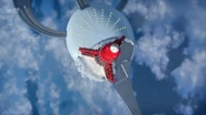 Alan tries to keep it away from other starships until the kill code for the mine can be found. When the mine targeted another ship, Alan went EVA from Thunderbird 3 on his hoverboard and disabled the mine with the kill code before it can detonate.
