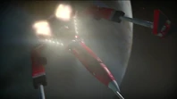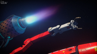 Alan was doing space junk duty using Thunderbird 3's grappling cables when he accidentally caught a stealth mine, which activates.