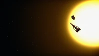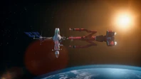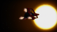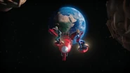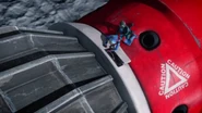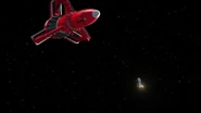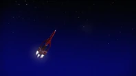 Alan and Kayo took Thunderbird 3 to rescue Ned Tedford and his flower, Gladys, from an asteroid hurtling towards the sun. But a solar flare struck the ship, disabling its navigation systems and propulsion. Alan and Kayo restarted the ship and headed back to the asteroid, using much of their fuel in the process.