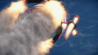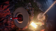 Alan and Kayo managed to fix it before they can crash into the sun and land inside the asteroid with a low fuel supply. They manage to launch form the asteroid with the help of a cracker bomb combined with Thunderbird 3's engines.