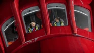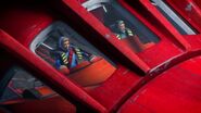 Alan and Scott transferred the guests from Thunderbird 3's cargo bay into Thunderbird 2's pod bay then went back to the hotel to check on Kayo. Kayo confronted the Hood who escaped, and she used the pod to escape the hotel before it exploded.