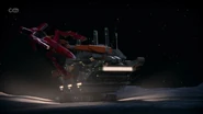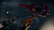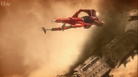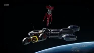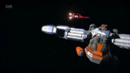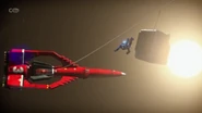 Thunderbird 3 was used to rescue CIR.R.U.S. as its rotors got disabled and Thunderbirds 1 and 2 both failed to rescue the crews. Alan used his ship's grapple arms to lower the station down to Earth but the rotors broke off and a piece of metal damaged one of Thunderbird 3's engines, forcing Alan to break off.