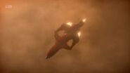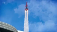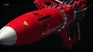 Alan and Kayo launched Thunderbird 3 to attach a bypass module to the Hood's earthquake satellite. The mission was successful and the Hood's lair was revealed to be in Australia. Kayo ejected from Thunderbird 3 to infiltrate the lair.