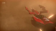 Thunderbird 3 was launched to rescue the colonists who were trying to reach Mars aboard the Helius. Alan tries to navigate the Helius through the asteroid belt using the thrusters of the craft. When the Helius begins to descend to Mars' surface, Alan uses Thunderbird 3's heat shield to protect the transporter as it crash-lands on the surface of the planet.