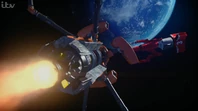 Alan is dispacthed in Thunderbird 3 to aid space traffic controller Conrad after a collision damages the Space Hub.