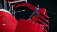 Alan, Kayo and Scott took Thunderbird 3 to rescue the Estrella Grand Space Hotel which was sabotaged by the Hood with Scott in Thunderbird 3's pod. Alan and Kayo docked with the hotel to evacuate the guests, including Lady Penelope and Parker.