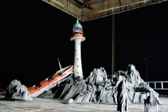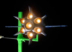 This Model of Thunderbird 1 stood at 5 feet tall and it was completely made out of Chemiwood that had the light features incorporated into the model. The 'Thunderbirds IR' logo was made out of Resin foam and it was later on used for the explosion scene at end of the trailer. The Lighthouse island featuring the rocks, were completely sculpted out of polystyrene that was used to go alongside with the lighthouse model, which stood at 6 feet tall.