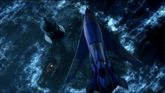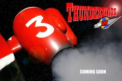 In 2005 a QuickTime trailer emerged of the Thunderbirds reboot. The trailer started with clips of the classic TV show of Thunderbirds 1, 2, 3 and 4 Launching from Tracy Island and from pod 4 of Thunderbird 2. Each launch clip had a text title featuring "In 1965" "The world witnessed" "The Launch of a Legend" "And now..." and then it cuts to a stormy weather to reveal the Lighthouse keeper in so much trouble as he struggles to hold on to the lighthouse that is preventing him from falling. The lighthouse is leaning after a ship collides into the smaller cliffs and then 'Kaboom!' one of the containers in the ship explodes as it was struck by Lightning. The Lighthouse keeper lost his grip and starts to fall from the lighthouse, was it all too late? When suddenly two missiles were launched and grabbed on to the side of the lighthouse and then it creates a safety net to catch the lighthouse keeper saving him from death. Then it moved on to revealing the new look of Thunderbird 1 saving the lighthouse keeper from falling to his death. The lighthouse keeper looked up and with a relief he calls out "Thunderbirds!". After that Thunderbird 1 flies off after a successful rescue mission. The text title returns featuring "Thunderbirds are back!" to reveal the Hood using his powers featuring 'The wrong hands' logo behind him. Another scene appears with Scott on a dangerous mission running away from the rotating spikes chasing him. The next title appears 'Thunderbirds are bigger!' to reveal a gigantic futuristic mechanical machine making it's way forward through the desert while the person runs for his life out of the way in time before getting crushed. The third title shows 'Thunderbirds are wilder': Scott is on a dangerous mission to get to the core in time before it blows up possibly something to do with a volcano mission as Thunderbird 1 races through it. Scott calls out "Almost to the core now, just a little bit closer!" next voice we hear is either Jeff or Virgil calling out "Scott, Pull up it's too risky! The whole place is going to blow up in 10 seconds" then Scott finishes the conversation with "Good I only need 9". It cuts out to show the final text revealing 'Thunderbirds are go!'. The logo appears and then within a few seconds it blows up, revealing that the series would be coming out in 2005 and finally we see Thunderbird 1 as it 'zooms' through the blue sky. It ends with Scott dodging lasers in the Hood's temple landed safely and then he says "Look, no strings!".