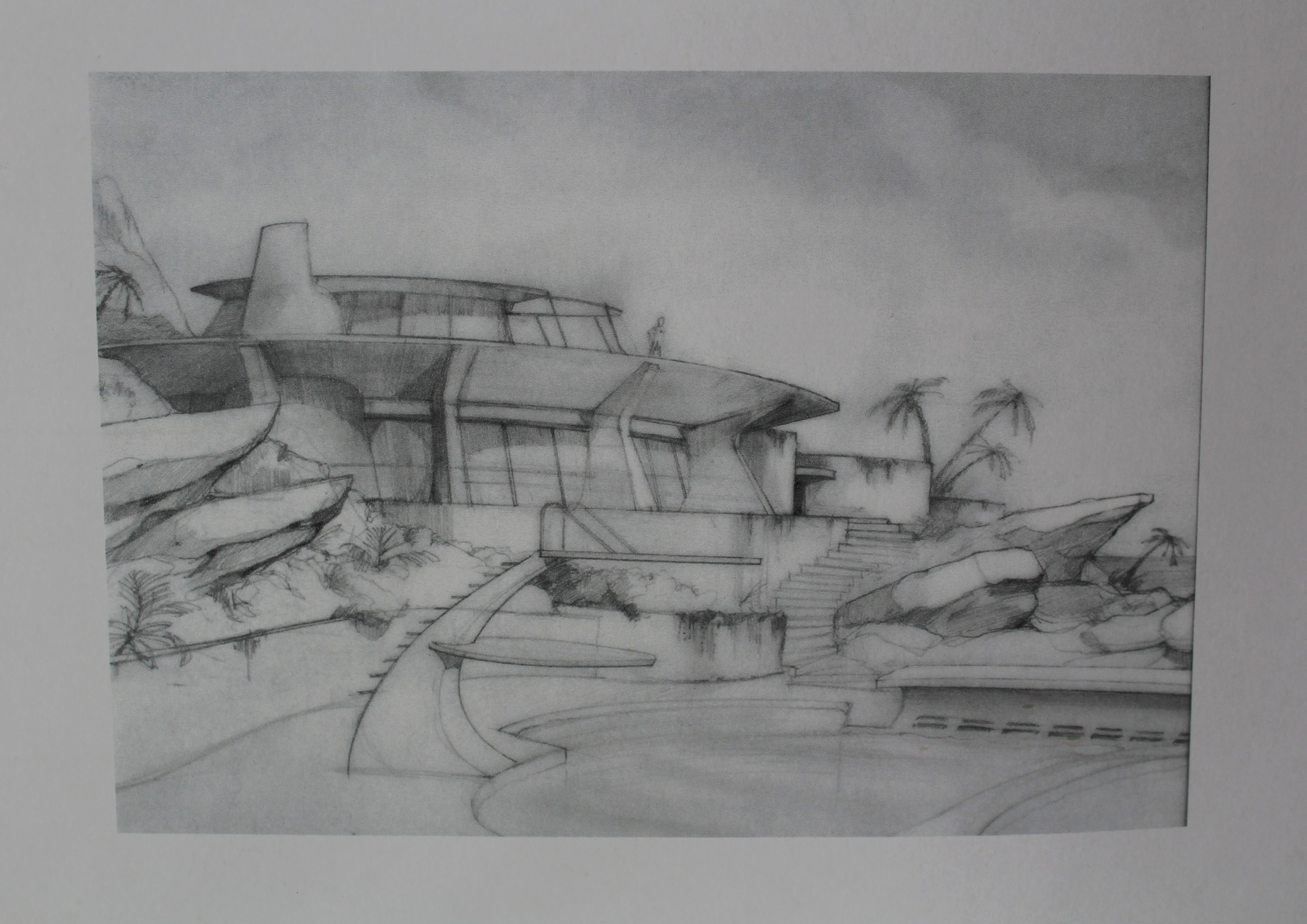 This is one of the Tracy Island concept Drawings that features the Swimming Pool Area that Thunderbird 1 will be launched.